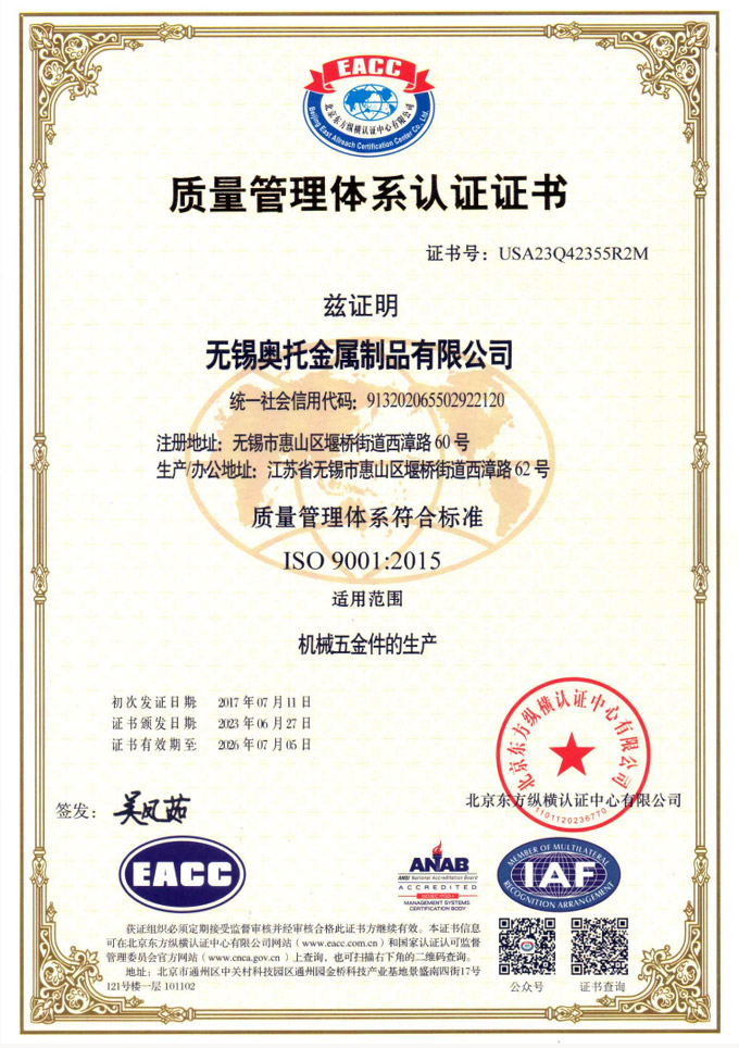 公司通過(guò)ISO9001質(zhì)量體系認(rèn)證 Through ISO9001 quality system certification